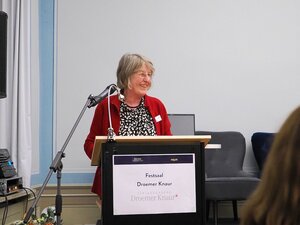 Den Auftakt bildete die Keynote der Autorin und Publizistin Ines Geipel: „Neues Land? Populismus, Trauma, Rechtsextremes, Nostalgie“.