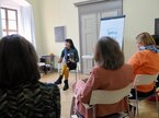 Der Sonntagmorgen begann mit einem Warm-up, bevor die den Vereinsmitgliedern vorbehaltene Vollversammlung der BücherFrauen stattfand.