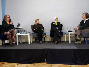 Auf dem anschließendem Podium vertrat sie spontan die krankheitsbedingt abwesende Journalistin Nhi Le und diskutierte mit der Schriftstellerin Esther Dischereit und Nour Al Zoubi vom Flüchtlingsrat Thüringen e. V. über konkrete Strategien gegen rechts. Die Moderation übernahm Britta Jürgs (AvivA Verlag).