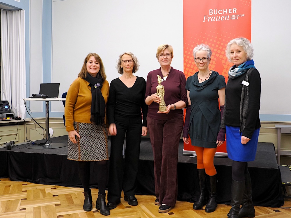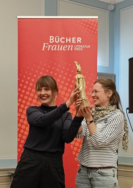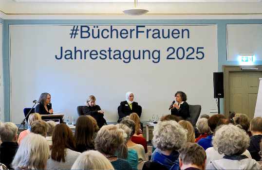 Ein Höhepunkt der Tagung war am Samstagabend die feierliche Verleihung des mit 10.000 Euro dotierten BücherFrauen-Literaturpreises „Christine“. Mit diesem Preis zeichnen die BücherFrauen alle zwei Jahre Autorinnen aus, die mit ihrem Schreiben zur Gleichstellung der Geschlechter sowie zur Stärkung von Frauen und Mädchen beitragen. 2025 ging die Ehrung erstmals an eine Übersetzung: Friedrike Hoferts herausragende Übertragung des Romans “Was Hortensia nicht mehr erzählen konnte” der 2003 verstorbenen spanischen Autorin Dulce Chacón (Originaltitel: “La voz dormida”) ins Deutsche, mit deren Veröffentlichung der unabhängige Verlag w_orten & meer einmal mehr seine besondere, diskriminierungskritische und perspektivöffnende Ausrichtung belegte.