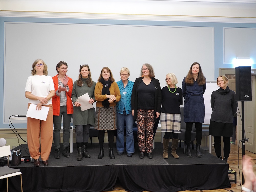 Mit großem Dank und Standing Ovations für ihre herausragende Arbeit wurden die ausscheidenden Vorstandsmitglieder Marianne Eppelt (1. Vorsitzende), Meiken Endruweit (stellvertretende Vorsitzende) und Martina Hayo (Schriftführerin) verabschiedet, sowie zahlreiche engagierte Mitstreiterinnen aus Arbeitsgruppen, Regionalgruppen und Organisationsteams gedankt. Anhaltenden Applaus gab es auch für die langjährige exzellente Tätigkeit der GeschäftsstellenFrauen Vera Seehausen und Annette Sandberg.